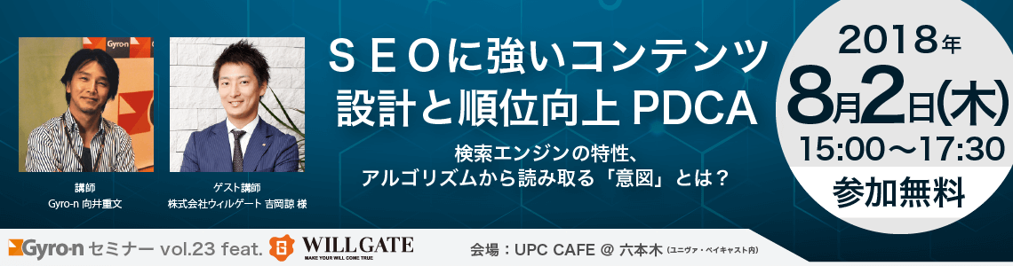 ※ツールを使ったSEO実践方法のご説明がございます。参加される方は事前に Gyro-n SEOのアカウントを開設 の上キーワード登録をしておいていただけますと、より深くご理解いただけるものと思います。
